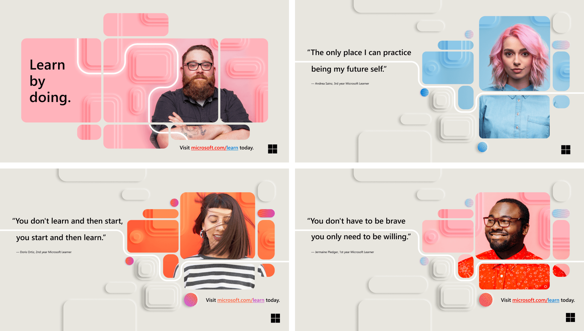 As Creative Director for Microsoft Learn, I led the end-to-end rebrand of one of the world's largest technical learning platforms: a mission-critical effort tied directly to Microsoft's goal of helping people skill up at global scale. In the post-COVID push to equip 50 million learners, we transformed a fragmented, rushed identity into a unified, inspiring brand system. Over five months, we aligned five divisions around a single idea: the instant when learning "clicks." The result became Microsoft's first integrated 2D/3D brand-meets-product language, built to scale across hundreds of courses and tens of thousands of pages spanning all Microsoft technologies.