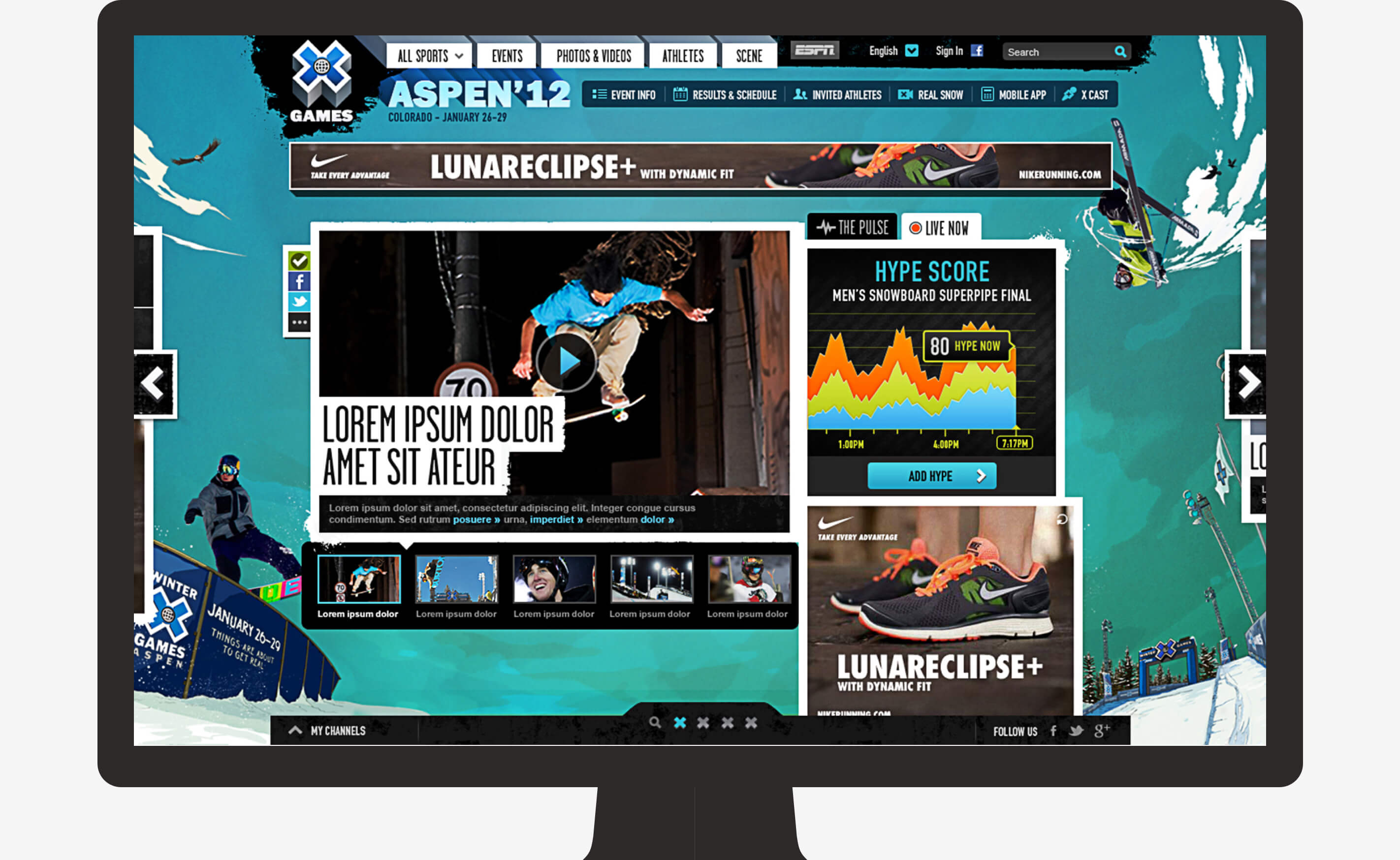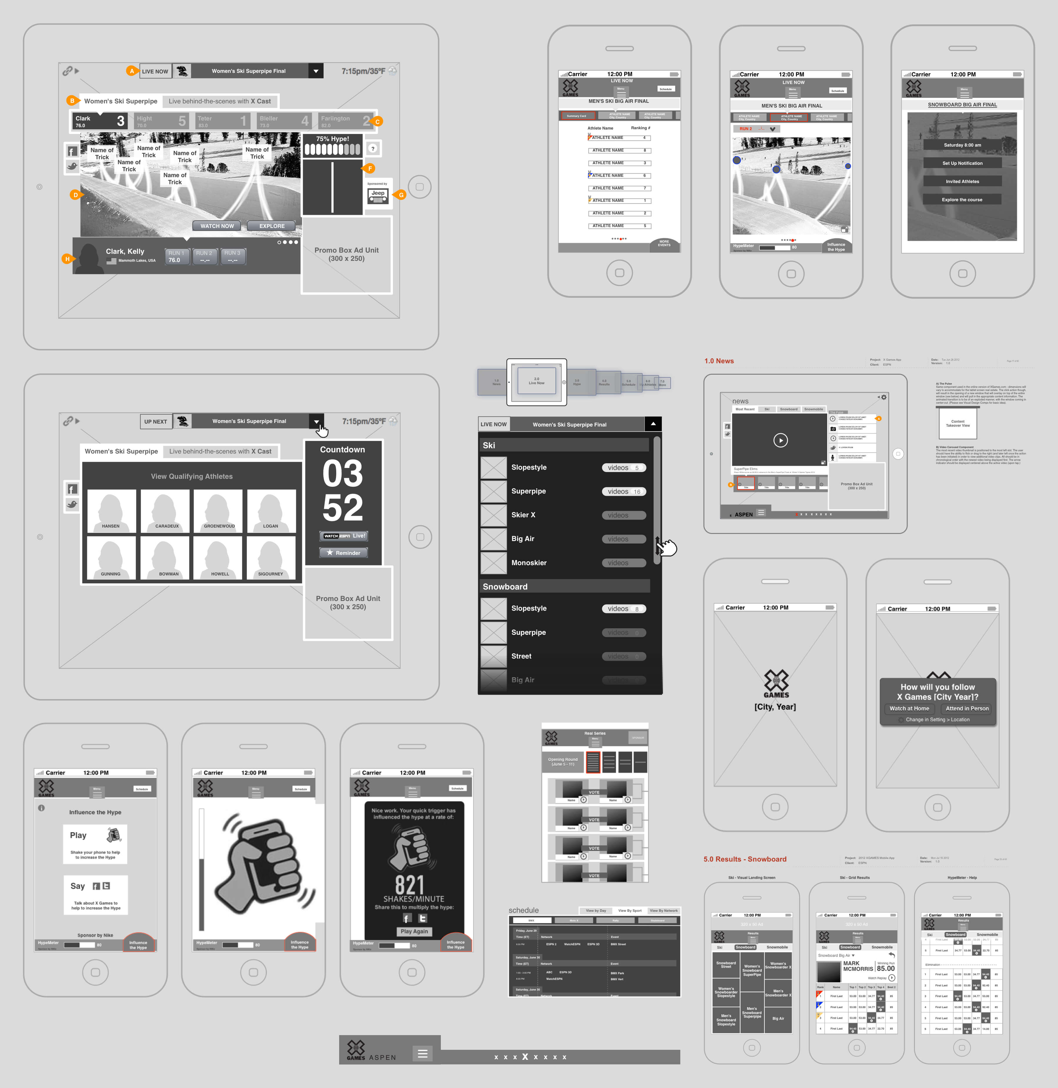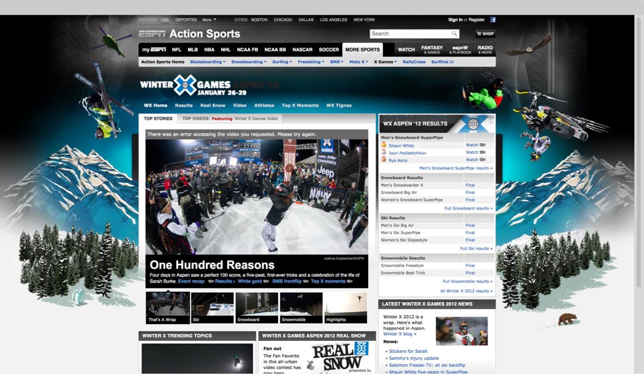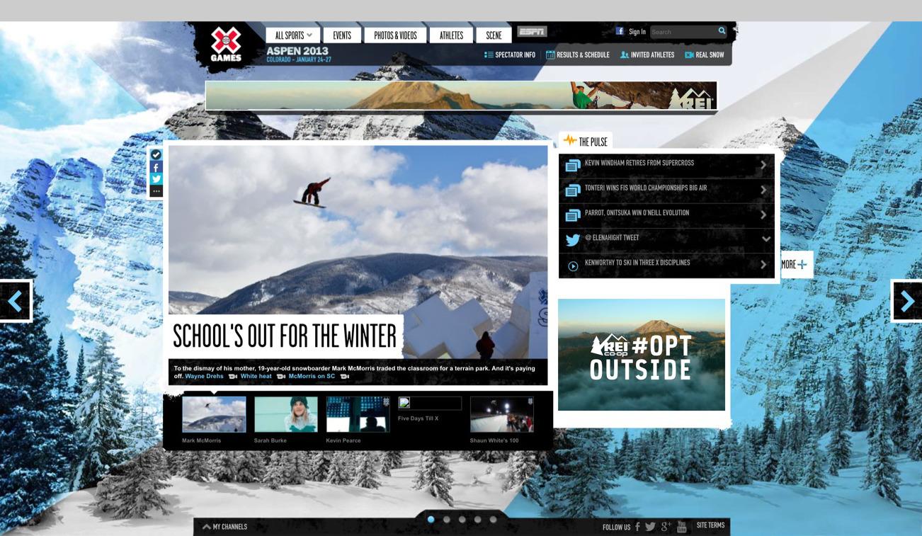 In the end, we created four mobile-forward experiences for extreme sports fans in time for the Aspen '13 X Games and established the design platform for future Summer and International games as well.