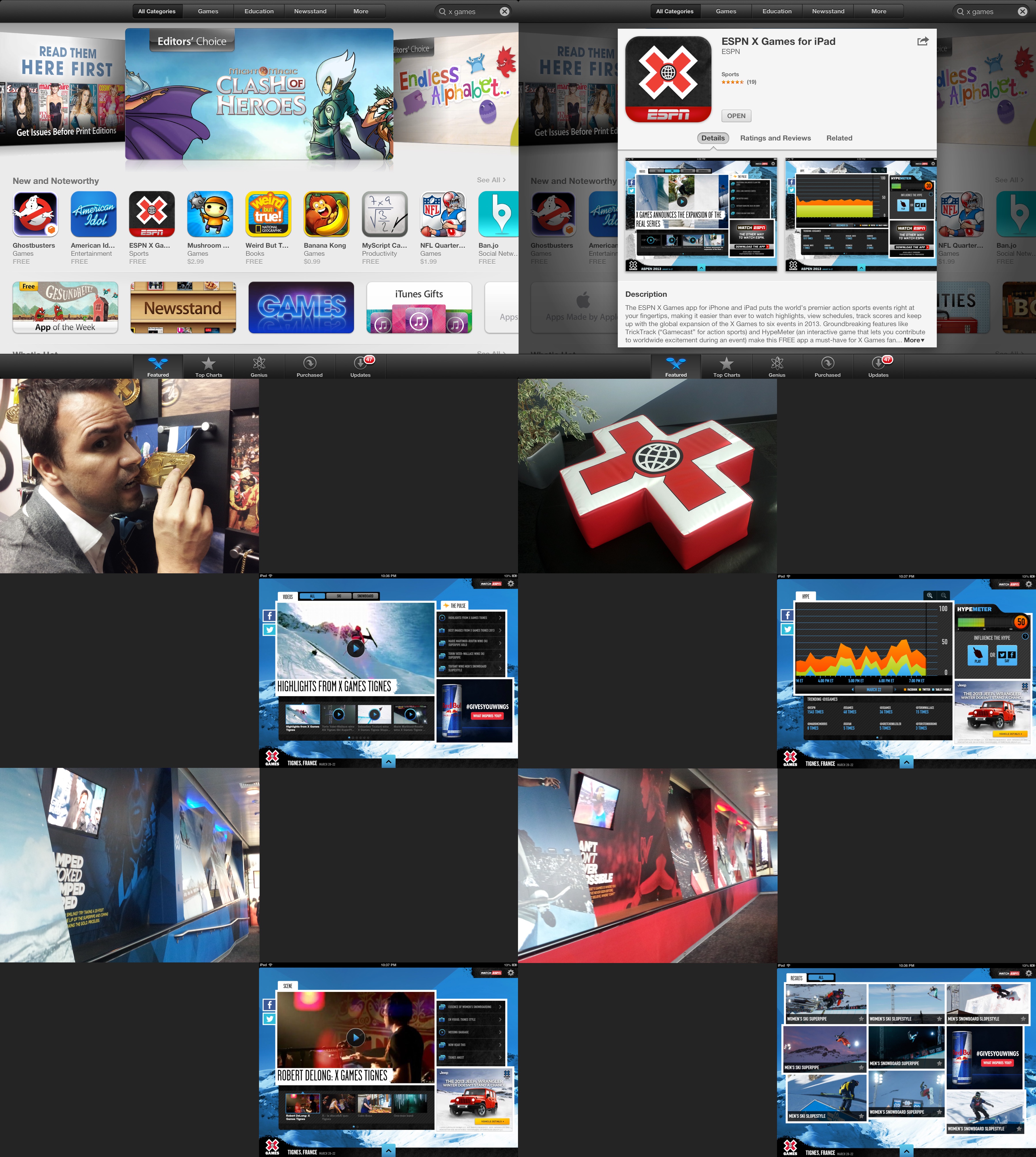 X Games not only asked us to conceive, design and develop their mobile and tablet apps (iOS/Android) — that provides secondscreen companion features to be used while watching TV — but leverage the ideas and interaction paradigms to redesign their mobile and desktop version of XGames.com... ALL AT THE SAME TIME.